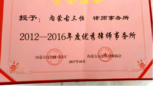 2017年10月10日,内蒙古自治区第九次律师代表大会、内蒙古公证协会第七次代表大会在呼和浩特市隆重召开。内蒙古三恒律师事务所主任董敏律师和内蒙古三恒(准格尔)律师事务所主任马卫青律师参加了大会。会上对内蒙古自治区优秀律师事务所和优秀律师进行了表彰,内蒙古三恒律师事务所被自治区司法厅、自治区律师协会评选为“优秀律师事务所”,荣获“2012-2016年度全区优秀律师事务所”的荣誉称号;事务所合伙人、党支部副书记严桂琴律师被评为“全区优秀律师”;董敏主任在本次大会上再次当选为本届大会的监事会副主席。