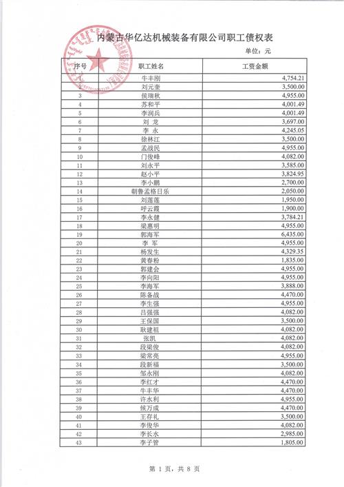 关于内蒙古华亿达机械装备有限公司职工债权的公示
