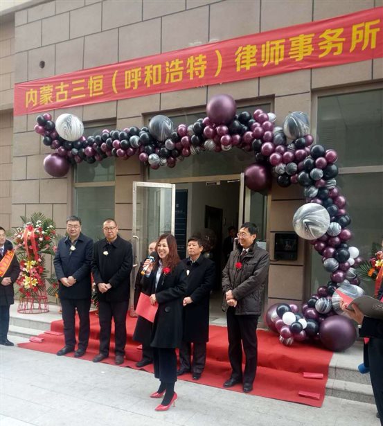 在年末收官的季节、在新年即将来临之际,2018年12月22日上午,在呼和浩特市新城区海东一号B2座10楼,内蒙古三恒(呼和浩特)律师事务所举行了隆重的开业庆典仪式。鄂尔多斯市司法局、呼和浩特市律师协会领导,内蒙古鄂尔多斯商会、内蒙古云曙碧慈善基金会等单位领导及企业负责人参加了开业典礼。三恒总所全体领导、部分律师以及内蒙古三恒(准格尔)律师事务所、内蒙古三恒(伊金霍洛)律师事务所负责人参加了庆典仪式。